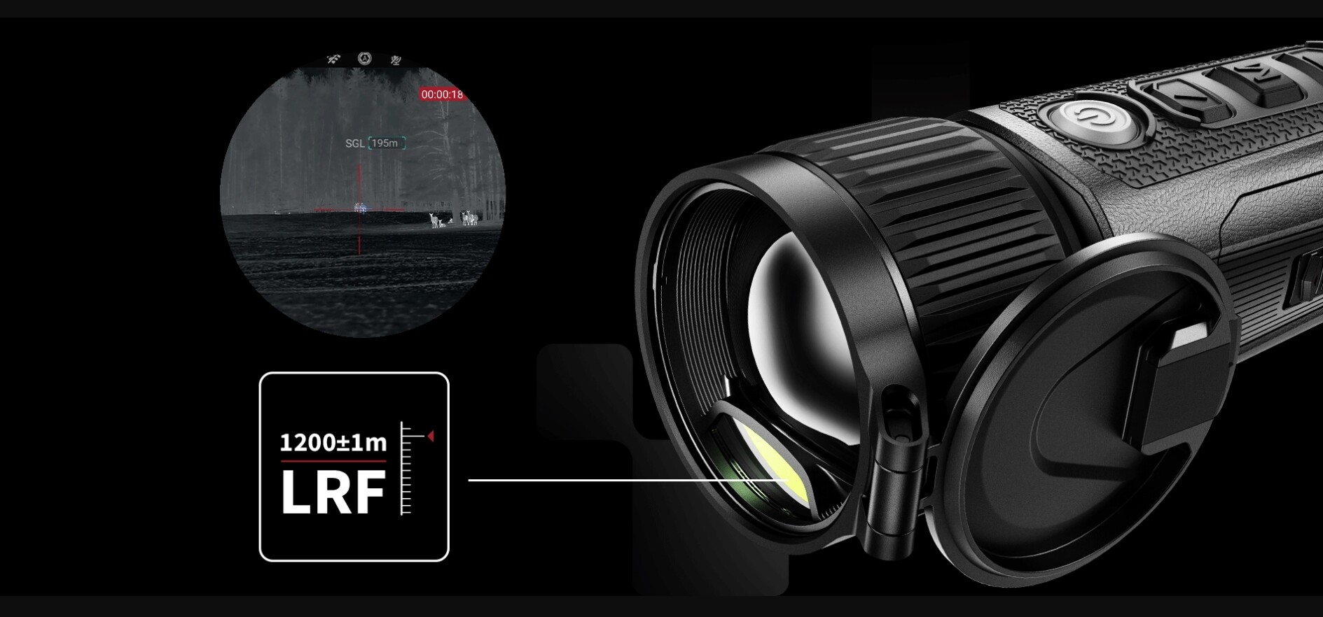 Unser integrierter 2-in-1-Entfernungsmesser (LRF 1200 m) vereint elegantes Design mit präziser optischer Achsenausrichtung. Das leichte, kompakte Design minimiert die Linsennutzung und bewahrt gleichzeitig eine makellose Bildqualität.