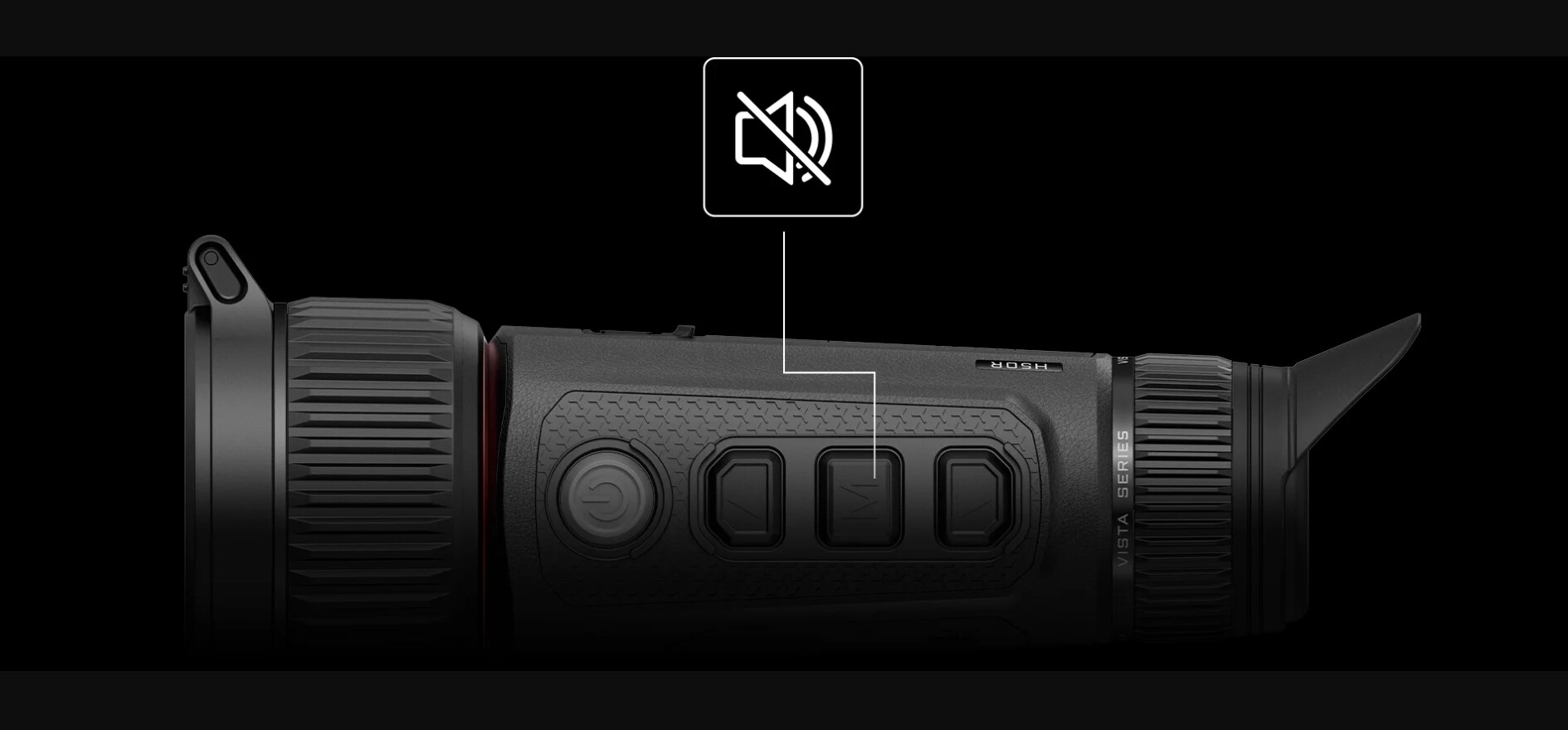 Die geräuschlosen Tasten der Vista ermöglichen diskrete Bedienung im Dunkeln, während die drehbare Augenmaske Lichtaustritt verhindert und die Sichtbarkeit für Tiere reduziert. Die rundum mit TPU-Kunstleder überzogene Oberfläche sorgt für angenehmen Halt – ideal für längere Einsätze.